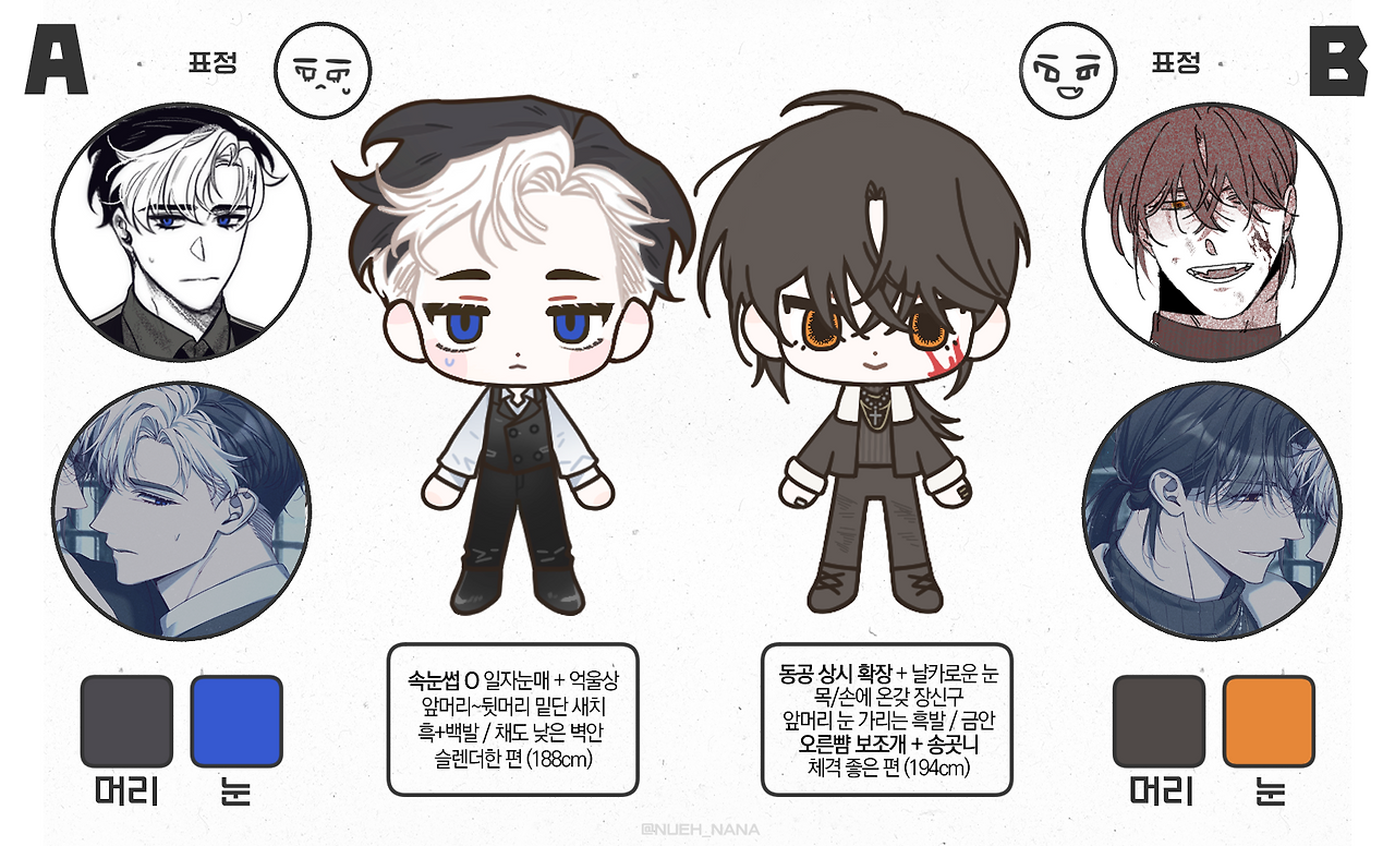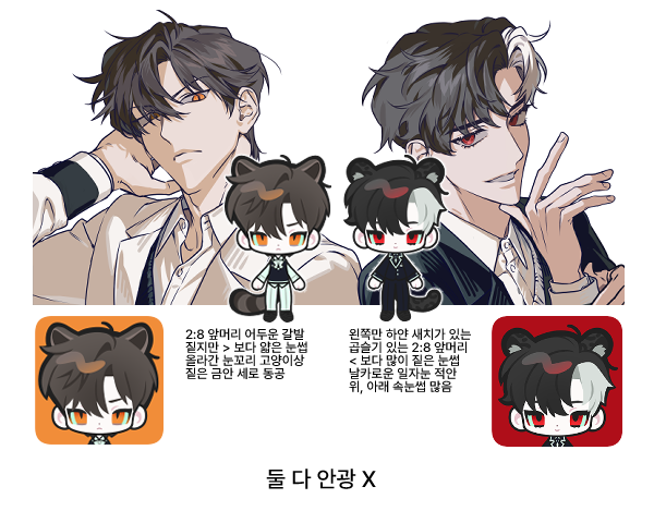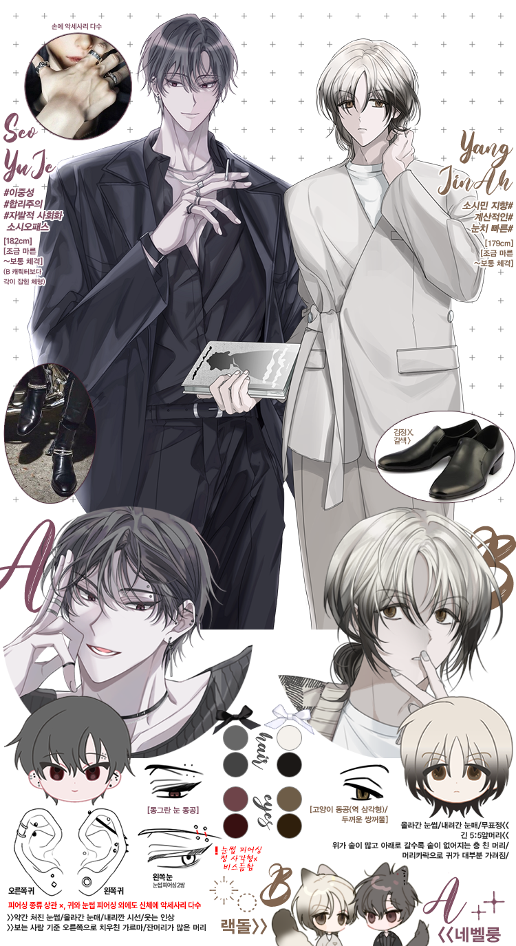 | 특이 사항 | 목에 건 헤드셋(색상, 디자인 자유) 한껏 멋부린 느낌 피어싱과 타투 X |