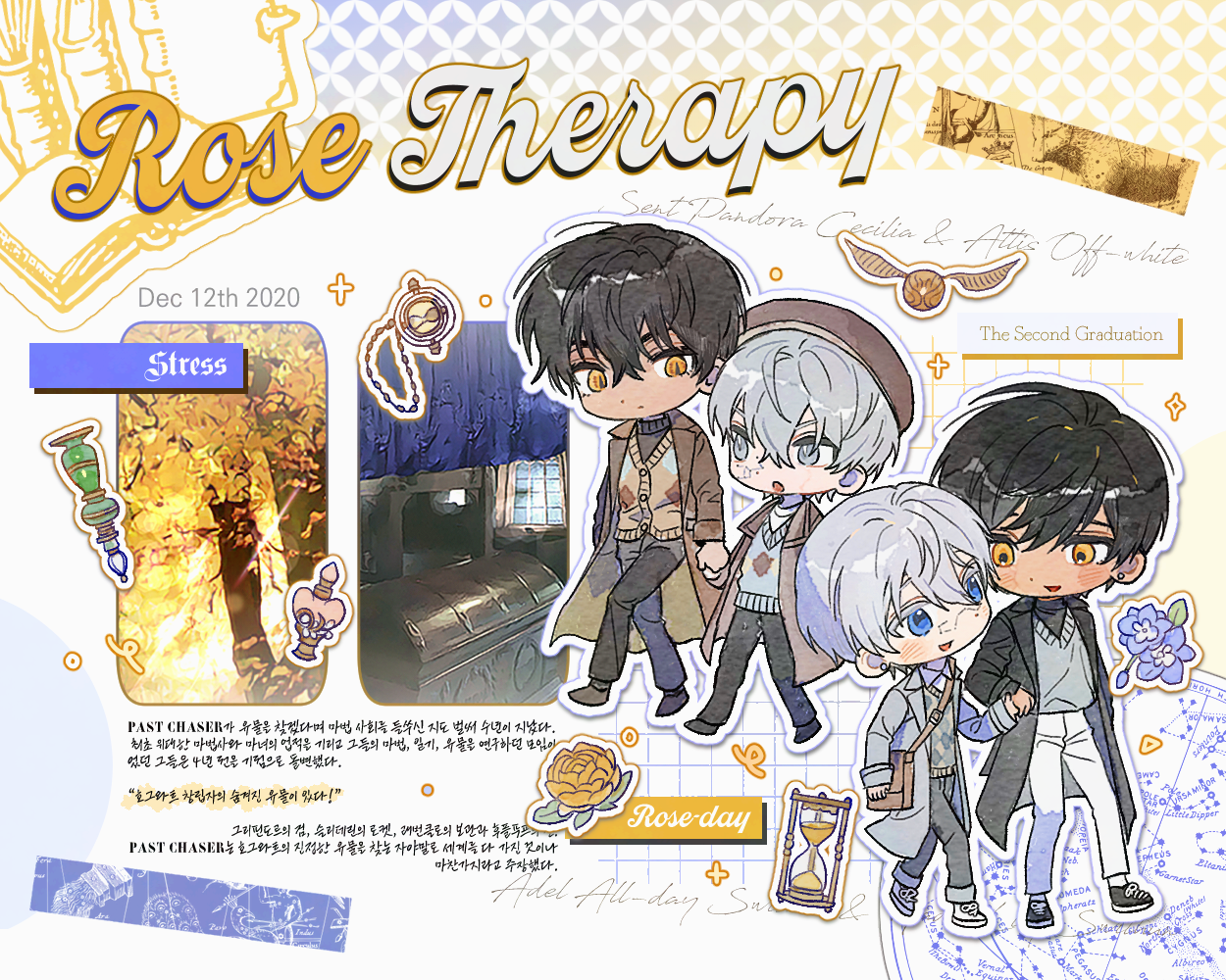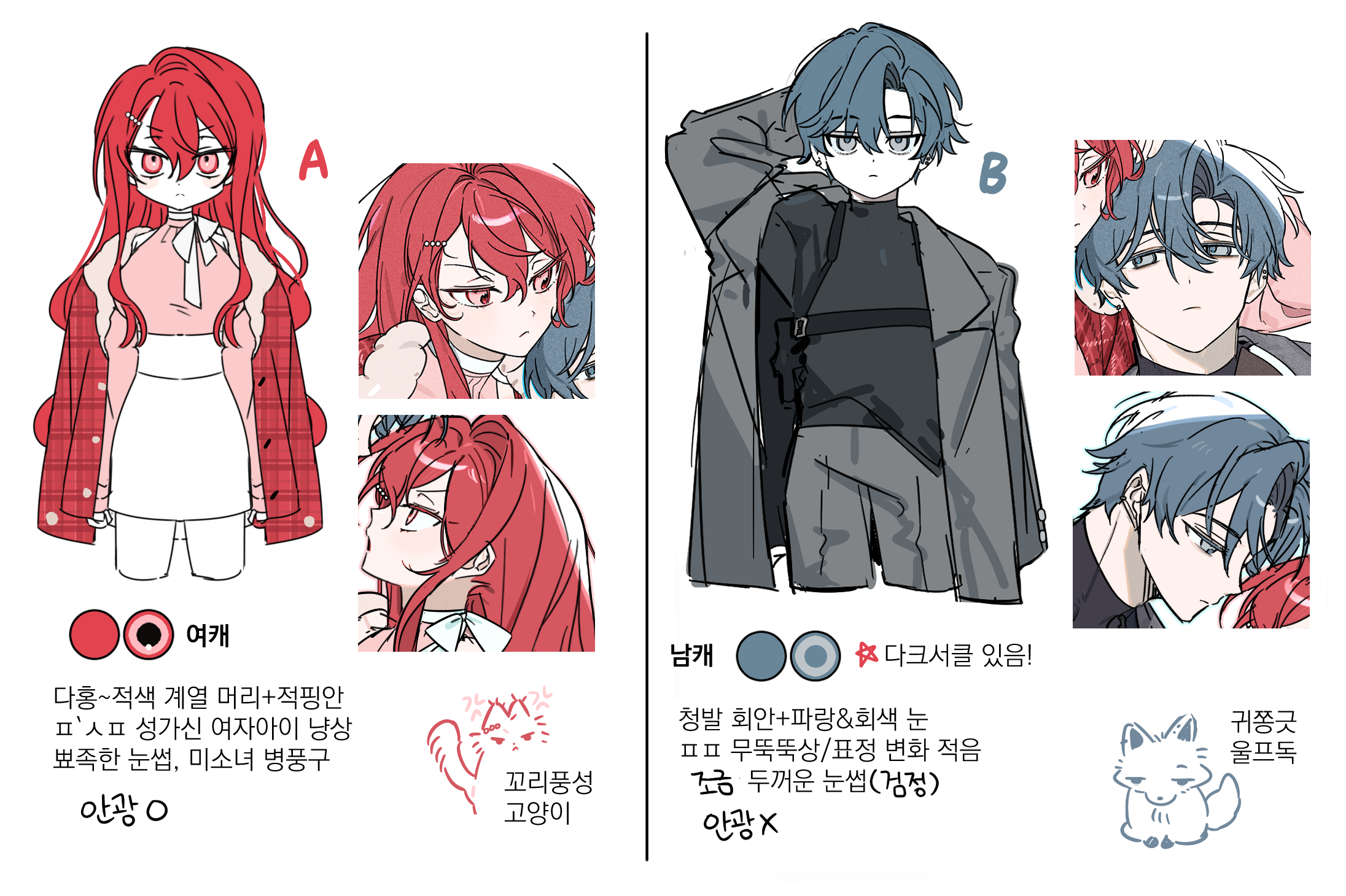 | 상징 키워드 | 장미, 천칭 저울, 늑대 | 악기(음표OK), 밤바다, 여우 |